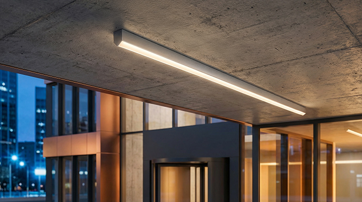 The profile design allows the supply cable to be concealed inside the housing during installation, maintaining a clean and precise architectural appearance.